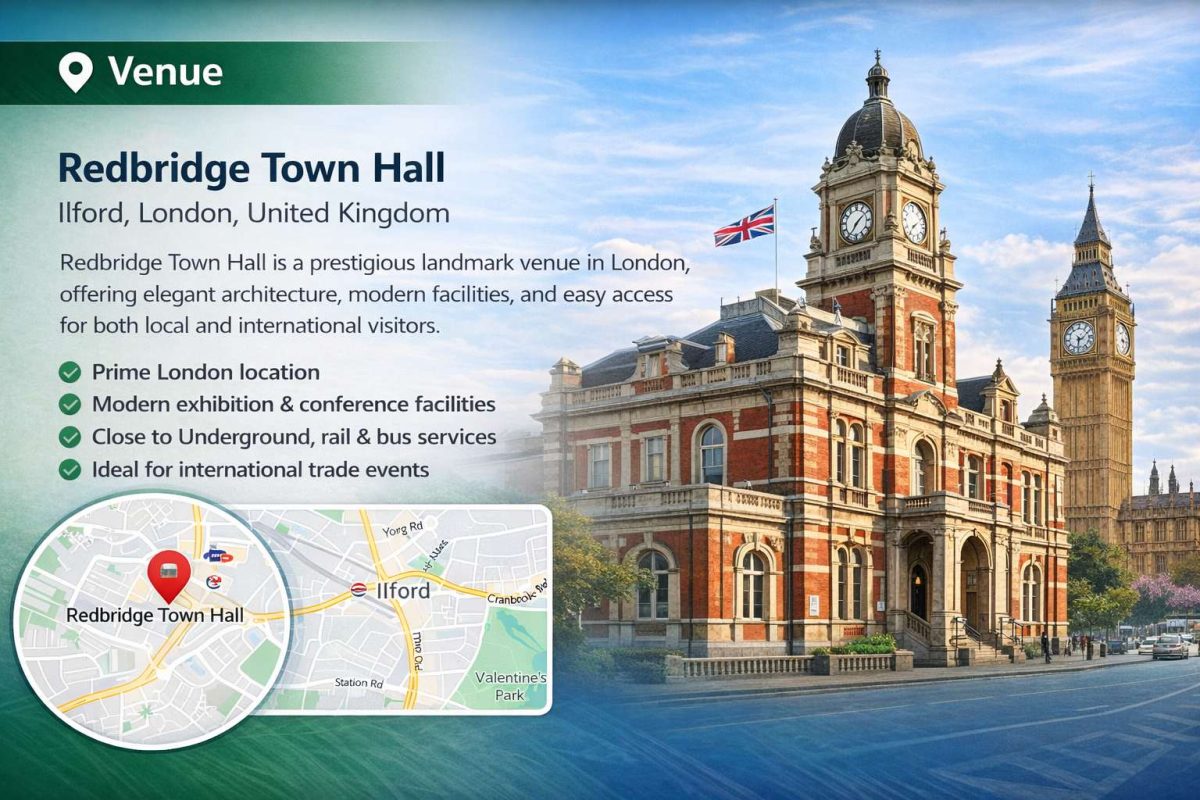 The Made in Bangladesh Expo™ – UK Edition 2026 will be hosted at the prestigious Redbridge Town Hall, a landmark venue in London known for its elegant architecture and modern event facilities.